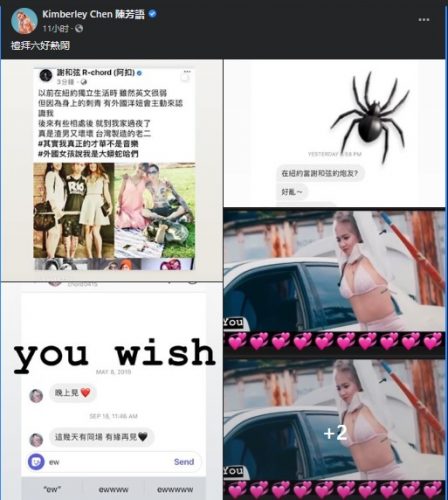 歌手谢和弦晒出多张和外国女子的亲密合照配文写“相处过后就到我家过夜了”,照片中却惊见女歌手陈芳语(Kimberley)意外卷入一夜情争议,对此她气炸撇关系更晒出多张对话记录澄清。