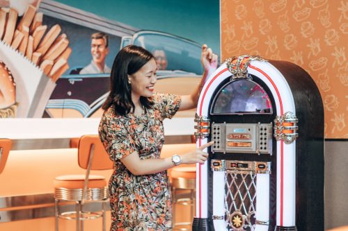 新餐厅采用时尚复古设计,备有复古长椅和吧台椅,这是喜欢拍照打卡的人士,绝不能错过的餐厅!为营造怀旧氛围,餐厅内会置放一台Juke Box点唱机播放老歌,让顾客在用餐的时候,能全情投入怀旧情怀,重拾回忆!新餐厅可容纳超过80位顾客,并且特设一个私人专区,供不超过20人进行特别活动,例如生日会或派对等!