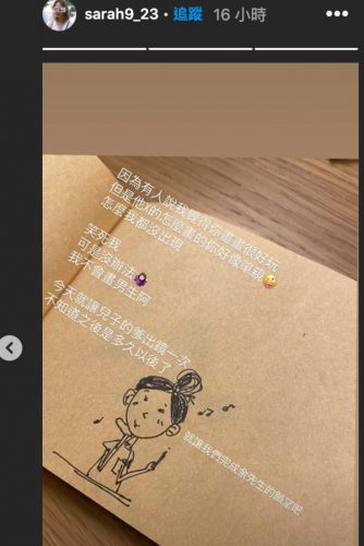 王棠云近日在IG写下”因为有人说我觉得你画画很好玩,但是他X的怎么画的你好像单亲,怎么我都没出现!”原来是平常会随手画画的王棠云,画作中几乎都不见余文乐,让他有些不满,不过王棠云直言事实是”可是没办法,我不会画男生啊!”但宠夫的她最后还是妥协,开心表示”就让儿子的爹出镜一次!”