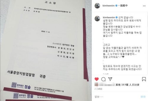 正式起诉恶评者 SJ金希澈硬起来:不会达成和解 25 Jul , 2020 | 娱乐前线 韩国男团SuperJunior成员金希澈昨日前往首尔江南警署正式举报了一批恶意攻击他的网民。 金希澈近日在SNS发文表示将举报一批恶意攻击者并称绝对不会与他们达成和解,也公开了起诉状,他在前往警局报案后在YOUTUBE直播向粉丝交代过程,再度强调不会从轻处理,也感谢帮忙搜集证据的粉丝,“如果从轻处理接受和解,那么帮我收集恶评的粉丝和律师团队的努力就会化成泡沫了,所以这件事我不会后退”。 分享