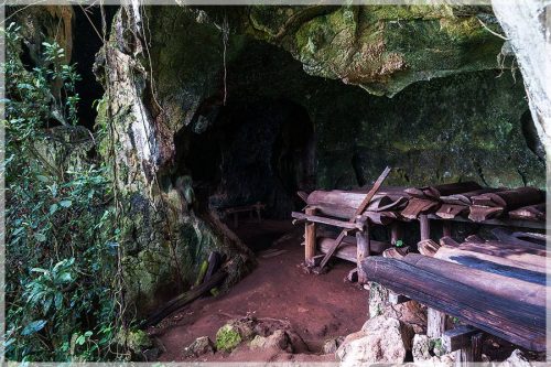 不过,沙巴有一处地方,那里的洞穴单听名字,就让人觉得恐怖!它的名称是棺材石岩洞,位于沙巴州东海岸地区,距离Kota Kinabatangan市镇约41公里!洞入其名,里面真的放满超过100口硬木棺材,而且入口处还雕刻了相似古文咒语的进门木条,令人毛骨悚然!那里的阶梯几乎都是木制,通道比较狭窄及偏高,路程可能会有点吃力!