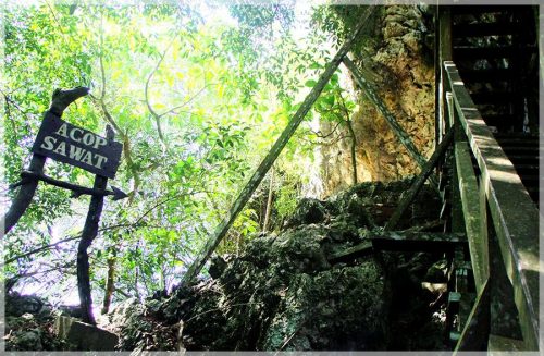 据了解,棺材石岩山洞是一座约39米高的岩石山,同时也是由2500万年历史以上的Labang石灰石形成的一个陡形石悬崖!它主要分为3个洞穴,较低于树林水平的称为“Agop Suriba”洞穴、在山中间位置的是“Agop Lintaga”洞穴以及高度约12至15米高的“Agop Sawat”洞穴!