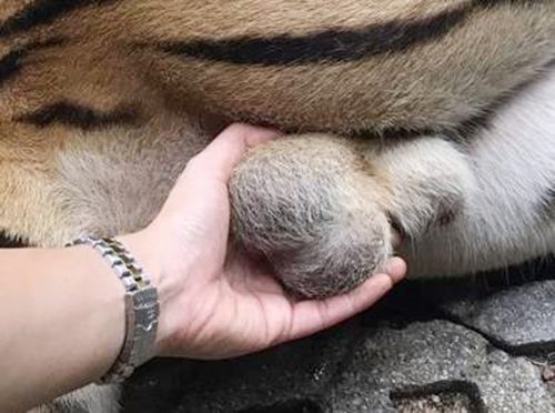 (清迈31日讯)动物园方表示,,民间信仰认为,抚摸老虎和它的蛋蛋,能够“赋予生命力量”!