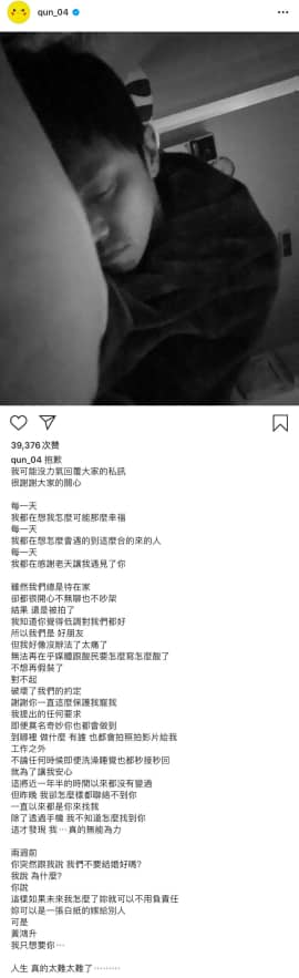 小鬼16日传出骤逝消息,峮峮录影当下得知消息忍不住痛哭,沉淀了一天17日凌晨在IG发出认爱小鬼的心碎长文,字句令人鼻酸,“两周前,你突然跟我说:我们不要结婚好吗?我说:为什么?你说:这样如果未来我怎么了妳就可以不用负责任,妳可以是一张白纸的嫁给别人,可是,黄鸿升,我只想要你……人生,真的太难太难了……”女方经纪人17日受访坦言:“峮峮状态不是很好。”
