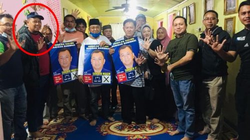 根据他在脸书上贴的照片,他曾与候选人、支持者大合照,大家站得很亲近,而且所有人都没有戴口罩!