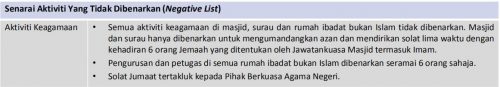 根据国安会SOP,清真寺和祈祷室只允许6位传教士或祈祷司进行日常的Azan及祈祷;其他宗教场所只允许最多6名管理员及员工在内。