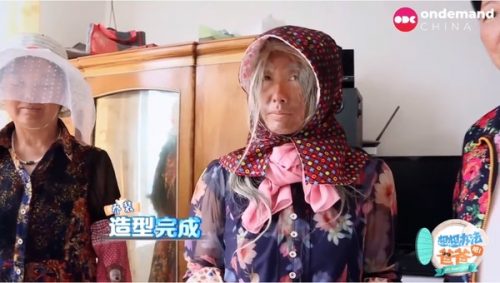 朱茵和老公黄贯中携女儿参加的中国真人秀节目《想想办法吧!爸爸》,节目中她挑战化老人妆,变身卖小吃的婆婆,结果还没开口,就被老公认出来啦!