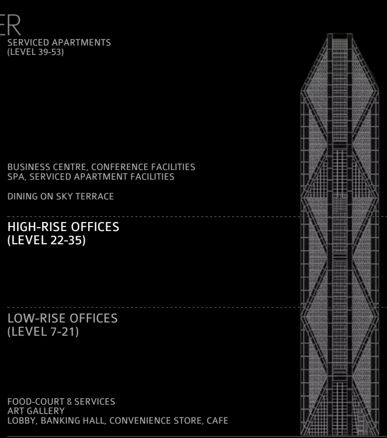 这栋大楼位于轻快铁安邦广场站(Ampang Park)仅5分钟的距离,内部设施包括空中餐饮、艺术画廊、五星酒店、水疗中心、精品店和咖啡厅等。