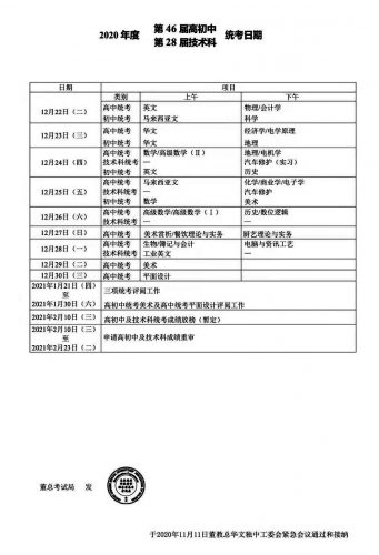 12月22至30日高初中统考 12 Nov , 2020 | 民生关注, 民生百事 (吉隆坡12日讯)董教总独中工委会决定,2020年度高初中统考日期展延至12月22日至30日,为期9天。 董教总今日发文告指出,今年新冠肺炎疫情突发,迫使统考日期有史以来首次展延,马来西亚华文独立中学统一考试迄今已举办45届。 文告指出,随着新冠肺炎疫情再度恶化,政府已宣布进一步扩大有条件行管令(CMCO)的实施范围,直至12月6日,教育部也宣布全国中小学及技职学院,将从11月9日起关闭至本学年度的最后一天,以及展延大马教育文凭考试(SPM)等决定。 所以,董教总独中工委会也决定展延统考日期。 分享