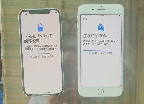 照片中,左右两台手机转移资料,还需等待15分钟,新手机全荧幕,旧款手机尺寸较大,且保有Home键。网友接连指认“右边是iPhone 8 plus?”、“7是真的该换了”、“是从iPhone8换到12吗?刚好和我一样”。