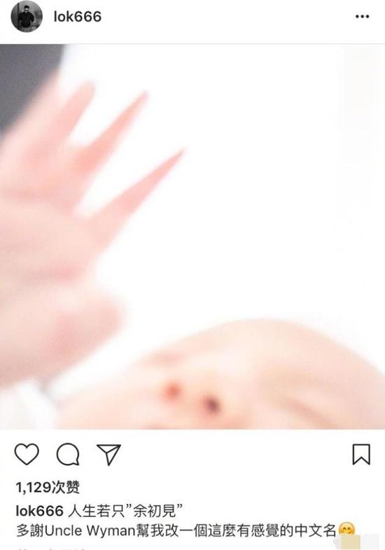 余文乐公布儿子中文名 26 May , 2018 | 娱乐前线 余文乐公布了儿子Cody中文名! 余文乐在自己社交媒体晒出自己儿子的照片,并配文道:“人生若只“余初见”,多谢Uncle Wyman,帮我改一个这么有感觉的中文名。”王棠云在本月10日产下一子,余文乐给儿子取英文名Cody Yue,现在他的中文名字也有啦,祝福初见快乐成长! 网友纷纷表示:“真好听!”、“好好长大,和爸爸一样帅哦!”、“初见,第一次见面,你好!” 分享