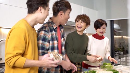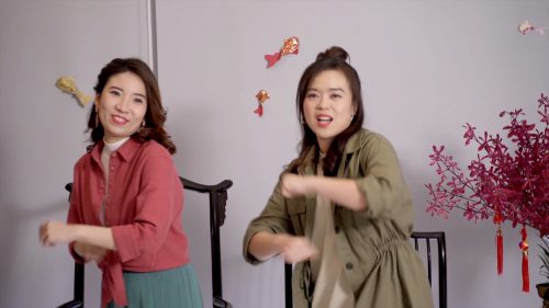 第一次参与的翁昕瑩笑说,最开心就是有机会和很多“前辈”合作,“譬如:Gary、Rickman、Orange,感觉好像从小就看他们的节目!MV拍摄当天最有趣的是在练舞时,感觉像是在练‘武’,大家很努力把舞步变得一致,也有人开始喊口号,好让大家记得舞步,所以有很多好笑的画面!”同样是首次参与的丁丁,当天当完班就赶到MV拍摄现场,“像‘癫’了一整天,虽然拍得有点很累,但我们都玩得很开心!”Nicholas和Angeline则再度参与新春活动,两人都感到很开心,“相隔多年后,终于能再和八度空间、WOWShop兄弟姐妹们一起拍摄新年MV,感觉好像回到好几年前178那种新年回家乡见‘乡亲父老叔伯兄弟姨妈姑姐’团聚的感觉。另外,最有趣当然是‘一家大小’一起跳舞,大家一起练习、聊天,真的很热闹,很喜庆!”
