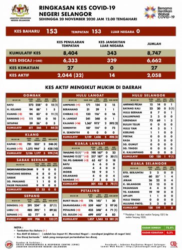 根据雪州卫生局發生的数据显示,雪州今日确诊为153宗,痊癒出院有240人。