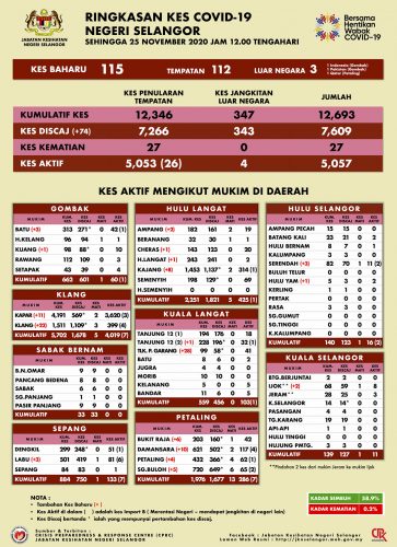 根据雪州卫生局的数据,截至今日中午12时,州内确诊115宗,其中112宗为本土感染,3宗为境外输入,另有74人痊癒出院。