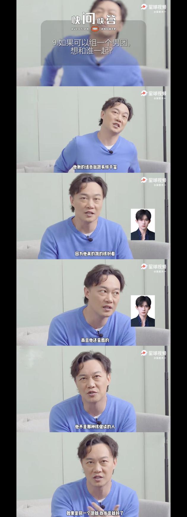 陈奕迅想和易烊千玺组男团:组合发言任务可交给我 30 Nov , 2020 | 娱乐前线 陈奕迅在接受采访时被问及如果可以组男团最想和谁一起成为组合,他点名易烊千玺表示对方跳舞很好看,人也很酷,这组合粉丝纷纷敲碗期待两人真的有合作! 陈奕迅近日接受采访时表示想和易烊千玺一起组团体,并称赞易烊千玺跳舞很好看,透露对方不是健谈类型,所有若成团之后的日子,发言的任务可以交给自己,看来陈奕迅真的不是开玩笑的,组图都还没成他就开始想未来了,他这番言论也引起不少网友热议表示“期待两位的合作了!”。 分享
