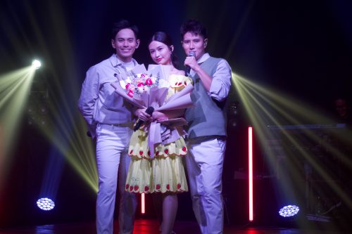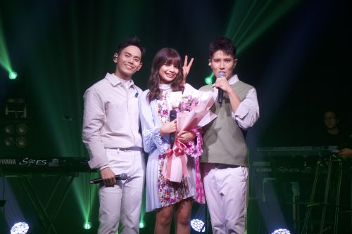 紧接着,俩子也荣幸的邀请了Sam在2015年电影《再见我爱你》的绯闻女友Ribbon 黄若熙做为嘉宾,三人一起演绎了甜蜜轻松歌曲《有点甜》。