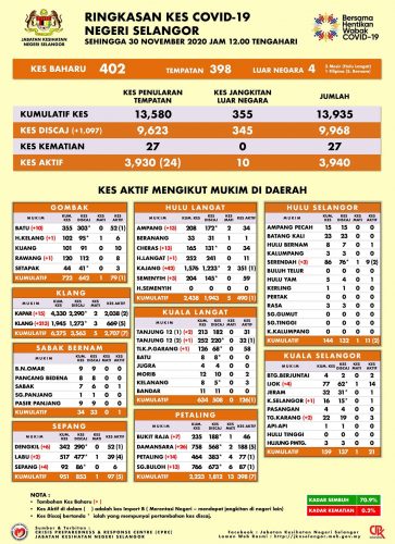 雪州今日激增402宗,占全国新增病例三分一。除了新增两个感染群,巴生港口的Kluster Perigi还暴增了153宗病例,疫情失控。