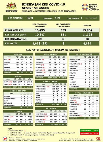 根据雪州卫生局数据显示,截至今日中午12时,州内本土确诊319宗,另1宗是境外输入病例。痊愈病例只有193宗。目前活跃病例仍有4626宗。