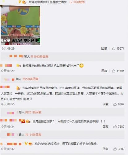 《Running Man》遭中国网民骂“辱华”因为“这个”画面 7 Dec , 2020 | 娱乐前线 韩国人气综艺节目《Running Man》播出10年,魅力席卷全球,最新一集玩起大富翁游戏,结果制作单位将中国的五星旗和中华民国国旗并列在道具上,引起中国网友不满,扬言抵制节目,节目也因此登上微博热搜。 该集节目将各国的首都和国旗放上大富翁棋盘,玩起游戏,可以看到起点旁边第一格就是台北,搭配着中华民国国旗;旁边则是北京,搭配着五星旗,目前中国字幕组也已经下架该集节目。 微博网友气炸直呼“追了节目这么多年,怎么会这样”、“就是承认台湾是独立国家了”、“滚吧!不会再看了”、“坐等节目组道歉”。 分享