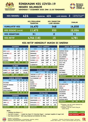 雪州今日再暴增426宗病例,当中276宗是与目前感染群无关的筛检结果,病毒在社区及职场肆虐的情况令人担心!