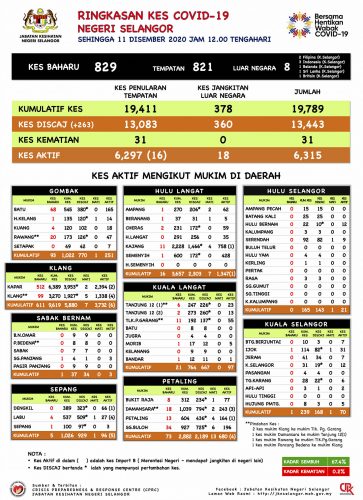 (吉隆坡11日讯)雪州确诊病例持续为全国最高,829宗确诊!
