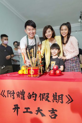 继贺岁电视剧《爱的约定》与《特派幸福》官宣开拍后,八度空间『原创强档』贺岁电视电影《附赠的假期》(Bonus Vacation)于11日正式开工,一众主演包括Gary叶俊岑、Jan秦雯彬、Jordan温绍平、April周雪婷进组拍摄,剧组更在拍摄主景举行开镜拜神仪式,祈求拍摄大吉!