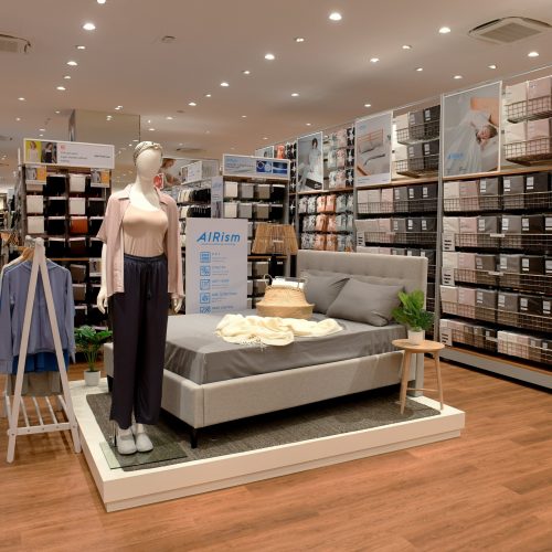 除了服饰意外,这里也设有Uniqlo AIRism Beddings寝具用品!想要添置商品的朋友,可以来到这里亲自挑选!不管是配色,还是质低都能一目了然,不怕会买错!值得一提的是,新分店也有设置定制服务的角落哦!之前,我们想要定制T恤的时候,就只能到吉隆坡Fahrenhit 88门市,现在这里也有提供这项服务了,是不是超好的阿!