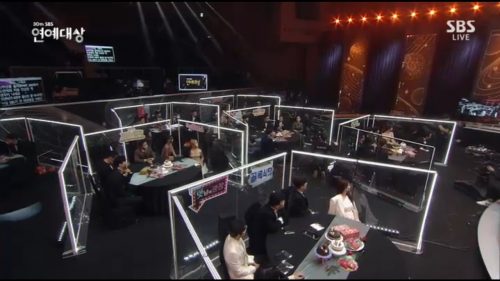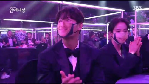 现场为保持社交距离,出动2公尺的“颁奖手臂”,递奖座给得奖者,还以身高192公分的大长人“李光洙”比喻,被称为“李光洙手臂”。今年度“黄金内容奖”由播出10年的最长寿节目《Running Man》获得,金钟国凭《我家的熊孩子》更一举夺下年度大奖,他哽咽表示:“看到《RM》队友让我更加哽咽,真的辛苦了”。