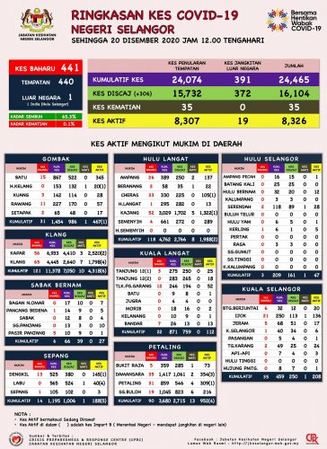 根据雪州卫生局的数据,截至今日中午12时,有440宗本土感染病例,1宗境外输入,累计病例达2万4465宗。今日有306人痊癒出院,累计痊愈1万6104宗(占65.3%)。州内活跃病例仍有8326宗。死亡病例维持35宗,死亡比率降至0.1%。