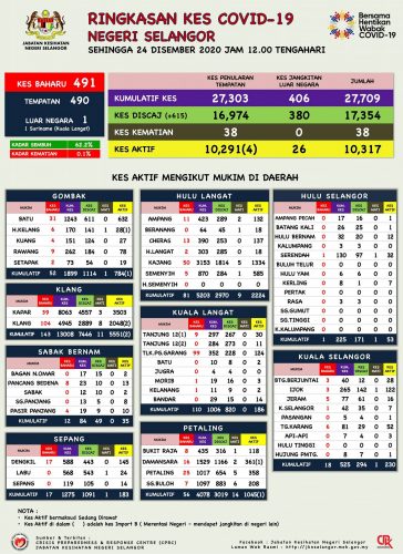 (吉隆坡24日讯)雪州确诊491,继续拿下全国第一!