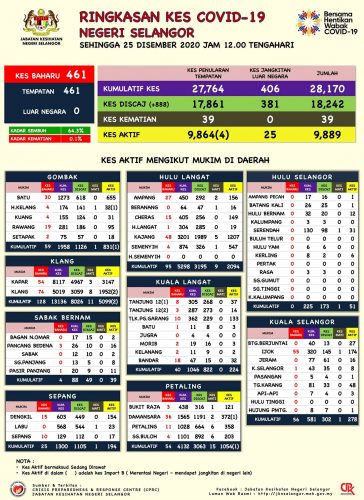 根据雪州卫生局的数据,截至今日中午12时,有461宗本土感染病例,累计病例达2万8170宗。但好消息是今日有888人痊癒出院,累计痊愈1万8242宗(占64.3%)。州内活跃病例跌至少于1万,有9889宗。死亡病例有39宗,死亡比率维持0.1%。