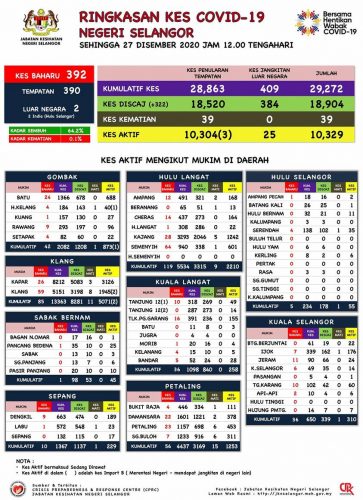 (吉隆坡27日讯)雪隆确诊病例今日392宗,乌鲁冷岳再登第一!