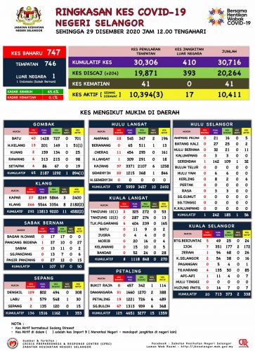 根据雪州卫生局的数据,截至今日中午12时,有746宗本土感染病例,1宗境外输入病例,累计病例达3万716宗。今日只有204人痊癒出院,累计痊愈2万264宗(占65.6%)。州内活跃病例再超越1万,有1万411宗。死亡病例维持有41宗,死亡比率0.1%。