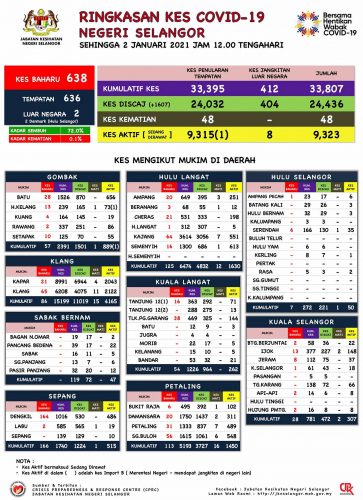 根据雪州卫生局的数据,截至今日中午12时,有636宗本土感染病例,2宗境外输入病例,累计病例达3万3807宗。今日有1607人痊癒出院,累计痊愈2万4436宗(占72%)。州内活跃病例再跌回少于万宗,有9323宗。死亡病例有48宗,死亡比率维持0.1%。