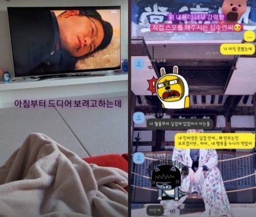 金希澈上传了和《顶楼》沈秀莲扮演者李智雅的聊天截图,写到“终于来得及看了,但是……”,并附上了一个表示“绝望”的表情包。