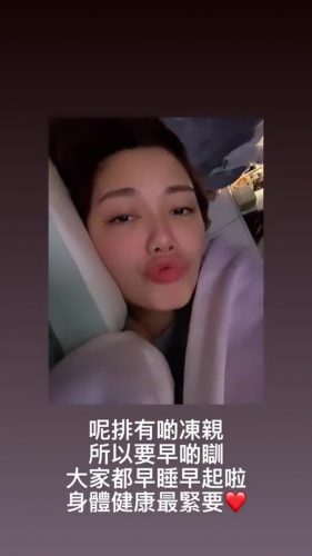 汤洛雯在IG限时动态上分享自己躺卧在床上准备睡觉的影片,还撒娇地说自己有点好像冷天气搞到有点不舒服,马国明即在IG发文留言:“Take care……wear”,直接隔空传情!