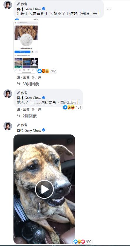 情绪失控的曹格,不止在留言区开火,还直接把该酸民的个人页面截图放到粉丝专业上,呛:“命不是命吗?你键盘手,我他X的给你打我的脸,出来”、“我就是不爽你他X的态度”,用字遣词相当火爆,而该名网民看到他的发文后,也出面道歉表示是自己断章取义,曹格则是继续回应“对不起,我太冲动,希望短期内不会见到你,不然我会犯罪”,双方互动引起热议。其他酸民其他网民纷纷安抚曹格,希望他别和酸民计较,相信曹格也在过后消气,最后也把网民个人专页的贴文删掉。