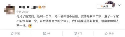 郑爽粉丝后援会会长在微博发文宣布脱粉,表示:“再见了朋友们,还剩一口气,号不会弃也不会删,微博是我半个家,没了一个家不能没有第二个,以后就是高贵的个体了,我们追星追得好刺激,塌房都跟别人不一样。”有网友评论询问:“之前的应援费怎么处理”,她回复:“等她回应,等我们理好账,除了已经花出去的部分会退的”。