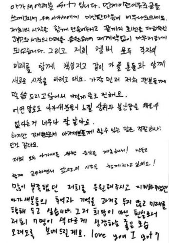 据韩媒报道, GOT7 7人继本月10日在社交网贴出相同合照,留言“GOT7 FOREVER”之后,昨日再度一同上载手写信给粉丝,力证兄弟情。 “抱歉因为这个原因而写信,我们未有跟JYP娱乐,这个我们的起始地、为我们努力到最后的地方续约。所有成员将会有新开始,我们知道无法用言语去弥补鸟宝宝(GOT7粉丝名)们的伤痛,亦知道你们过得不容易。我们只有一件事要说,就是会继续为鸟宝宝们创作音乐,我们未来将再会一同度过。”
