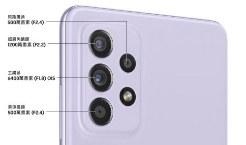 摄像方面,Galaxy A52后置配置了四摄镜,分别是64MP 主摄镜头(支持OIS)、12MP超广角镜头、5MP景深镜头和5MP微距镜头,至于前置镜头则为32MP!此外,Galaxy A52也提供其他功能,像是夜景模式让用户能拍出更明亮的夜拍!
