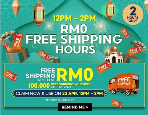 配合开斋节的到来,Shopee将于4月23日举办大型促销活动!打算清空购物车的姐妹们,记得mark下时间咯!届时,各个商家都会参与并提供一系列超值折扣!不同的时段会有不同的好康及优惠劵送出!