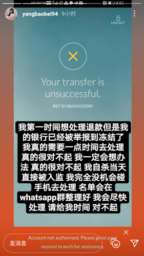 大马网红YBB杨宝贝4月17日企图自杀,随后又被爆出卖包包诈骗事件,时隔一个星期她终于在IG动态回应此事,并诚恳的向大众道歉!