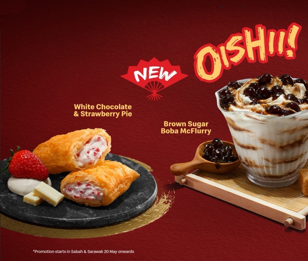 麦当劳限定推出黑糖波霸McFlurry 30 Apr , 2021 | 吃喝玩乐 麦当劳经典的 Samurai Burger 强势回归啦!同时还有限定推出的黑糖波霸McFlurry哦! 麦当劳宣布再推出日本武士汉堡 Samurai Burger!浓郁的Teriyaki Sauce酱汁配上肉饼,就是好吃!汉堡共有鸡肉和牛肉馅饼选择,从即日起正式在全马麦当劳出售!另外,麦当劳也特别推出了Oishi甜品,分别有限定推出的黑糖波霸McFlurry以及白巧克力草莓派!喜欢吃甜品的朋友不要错过了! 分享