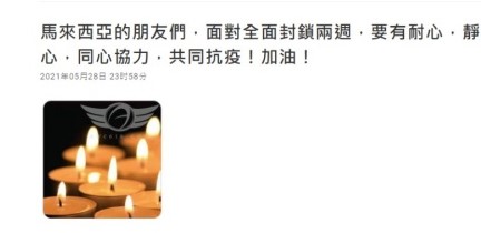 全国FULL MCO 刘德华暖心为大马粉丝打气 30 May , 2021 | 娱乐前线 大马女婿刘德华得知我国疫情严峻,将在6月1日至14日进入全面封锁状态,他也暖心在“华仔天地”发文呼吁大马粉丝一起共同抗疫! 刘德华28日晚在“华仔天地”发文写:“马来西亚的朋友们,面对全面封锁两周,要有耐心,静心,同心协力,共同抗疫!加油!”,此举让大马粉丝都非常感动,相信马来西亚一定会迎来抗疫成功的一天!大家都要加油! 分享