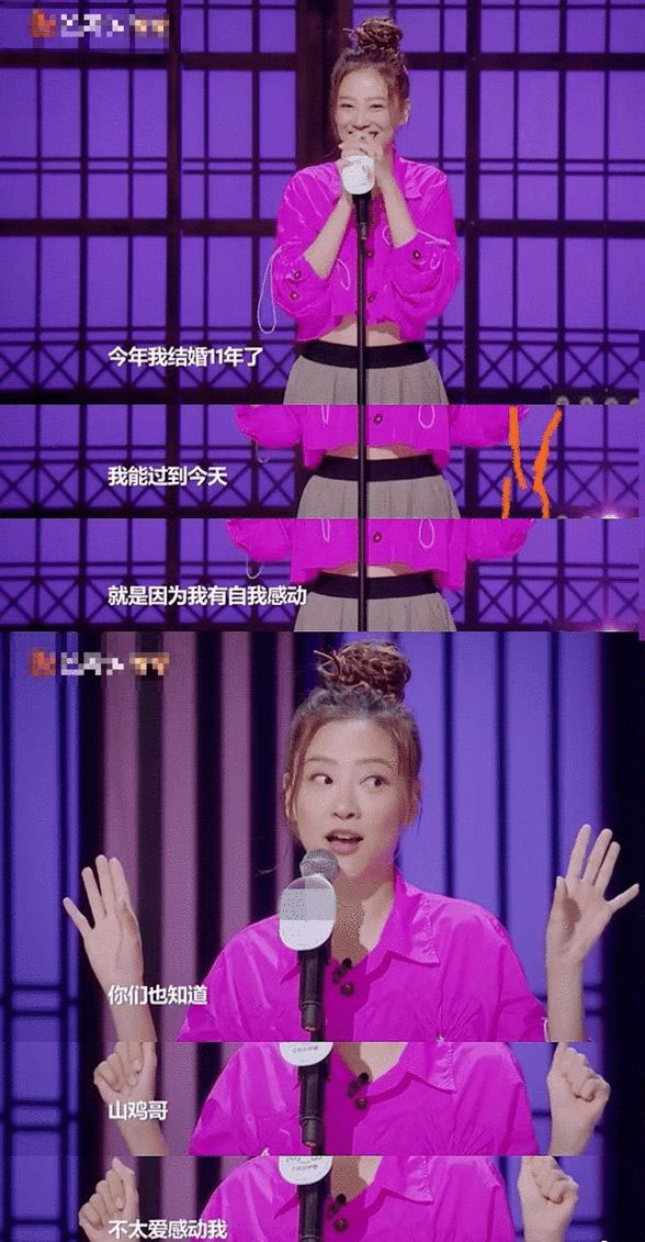 应采儿近日参加了脱口秀节目《听姐说》,在节目中她用夸张的肢体、语调吐槽陈小春。今年是她与陈小春结婚的第11年,她坦言能走到现在是因为自己很会“自我感动”。