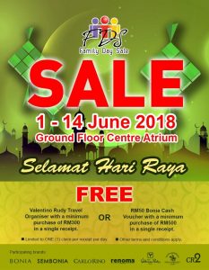 今日起一连三天(6月1-3日),早上10点至晚上9点半,吉隆坡SOGO商场举行Special Raya Prize Bonanza。