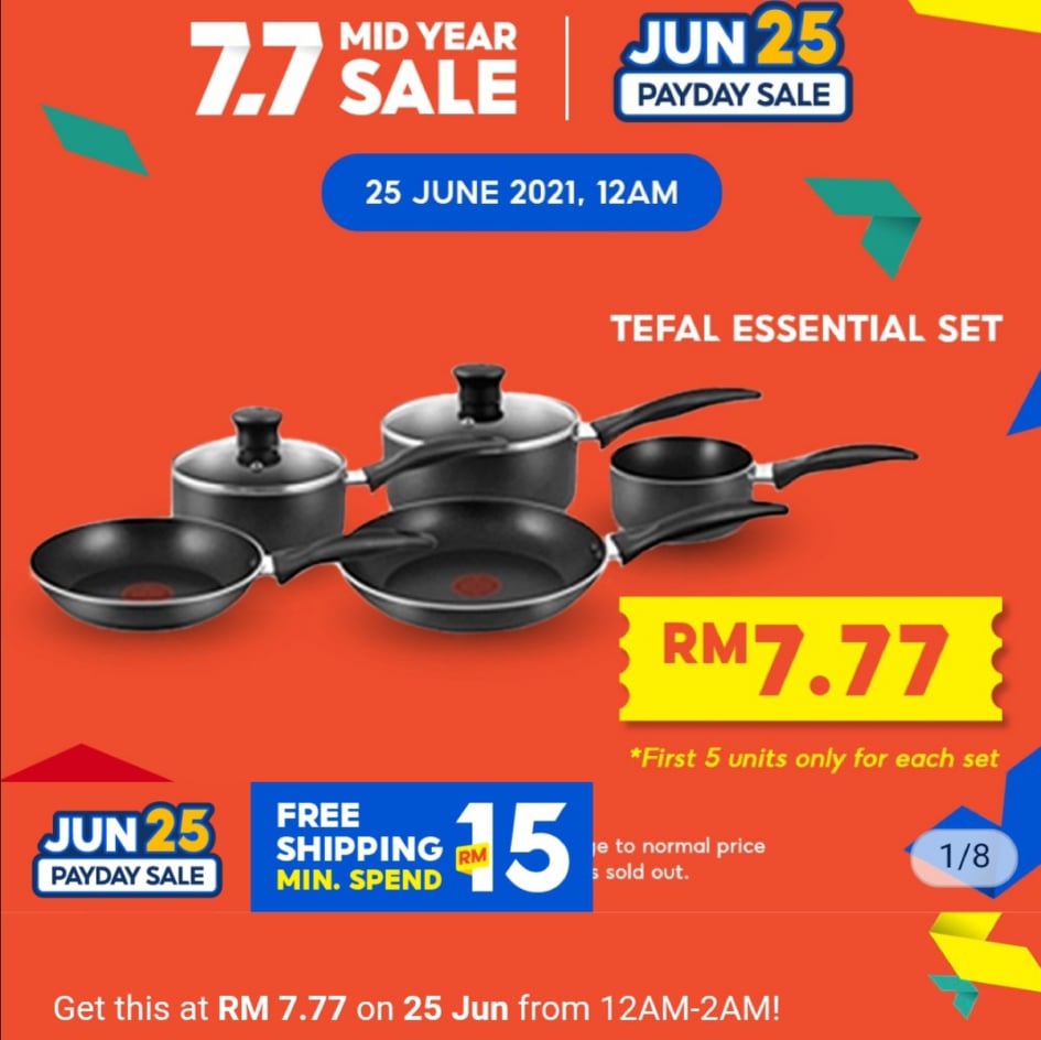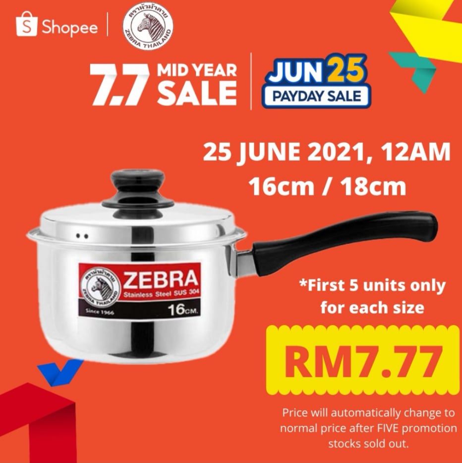 Shopee将于6月25日限时推出特价优惠!各种家具、厨具用品均有提供折扣,其中最不能错过的,当然是妈妈们最喜欢的斑马牌Zebra锅盖组合啦!最低只需RM7.70就能买到,简直是便宜到笑!除了斑马牌Zebra,其他的例如Tefal、Dessini Italy等等,都有提供折扣!限时两小时的特价优惠,记得不要错过!