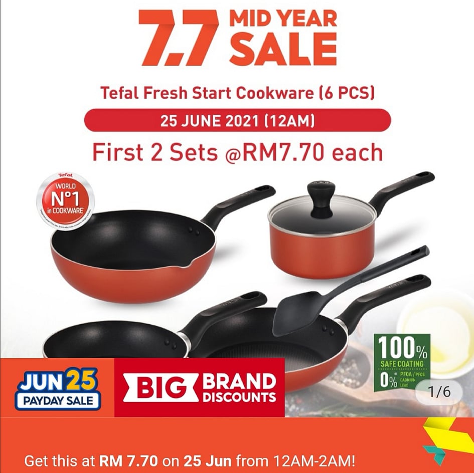 Tefal 不粘锅厨具6套RM7.70(原价RM399)