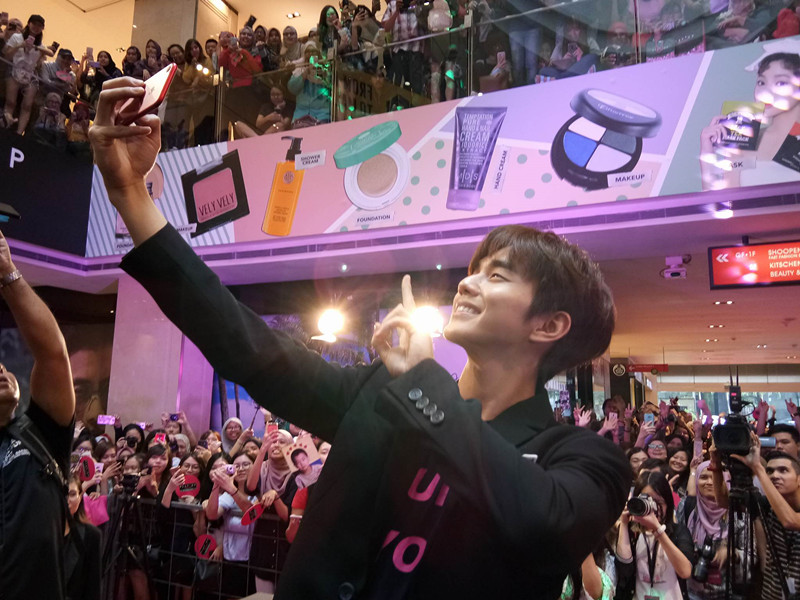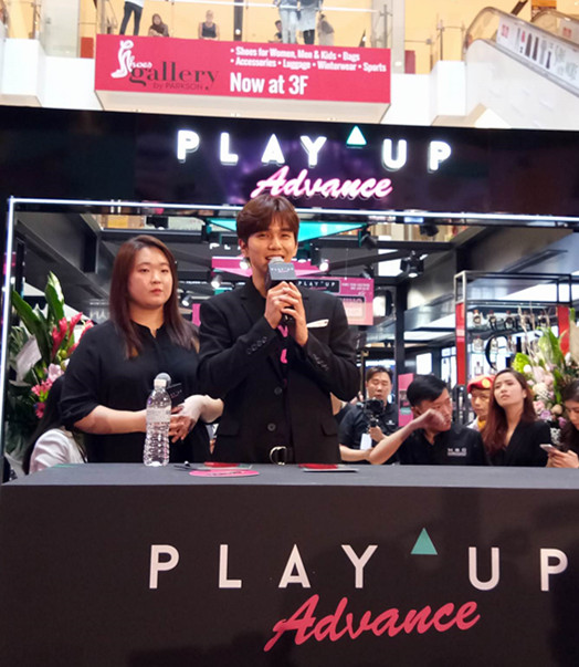 【推介仪式】韩国演员俞承豪来马为美妆产品进行推介仪式,他在台上为60位幸运粉丝签名兼贴心写署名,期间他被多位美眉粉丝大撩说“来我家吧”、“你好可爱”,让他无敌害羞!