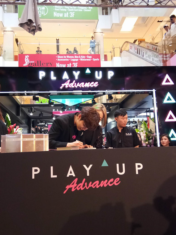 接着俞承豪就即场为60为购买美妆产品“Play up Advance”的60位幸运粉丝签名,根据主持人现场表示,俞承豪让工作人员取得幸运儿名字,再一一为他们在自己照片上签名与填写他们名字。另外,虽然被设限不能握手、拥抱、合照,但他会主动向粉丝握手,台下粉丝频频吃醋“不爽”。